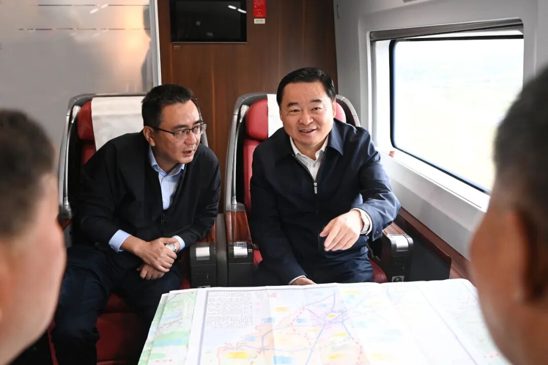 省委书记、省人大常委会主任郝鹏乘坐试运行列车从沈阳北站出发向东行驶,一路上听取情况介绍,与铁路部门负责同志深入交流。