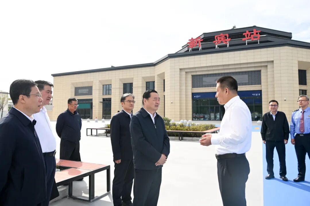 省委书记、省人大常委会主任郝鹏在沈白高铁新宾站,察看站房和配套设施建设情况。