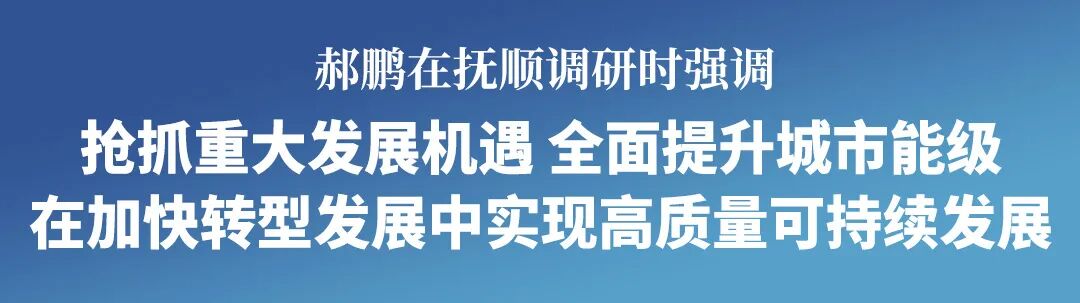 9月19日至20日,省委书记、省人大常委会主任郝鹏在抚顺市调研。他强调,抚顺市要深入学习贯彻习近平总书记在辽宁考察时的重要讲话和重要指示精神,抢抓“通高铁”“办冬运”重大机遇,高质量开展城市更新,持续深化文体旅融合,推动城市业态升级、功能完善、品质提升,在加快转型发展中实现高质量可持续发展。