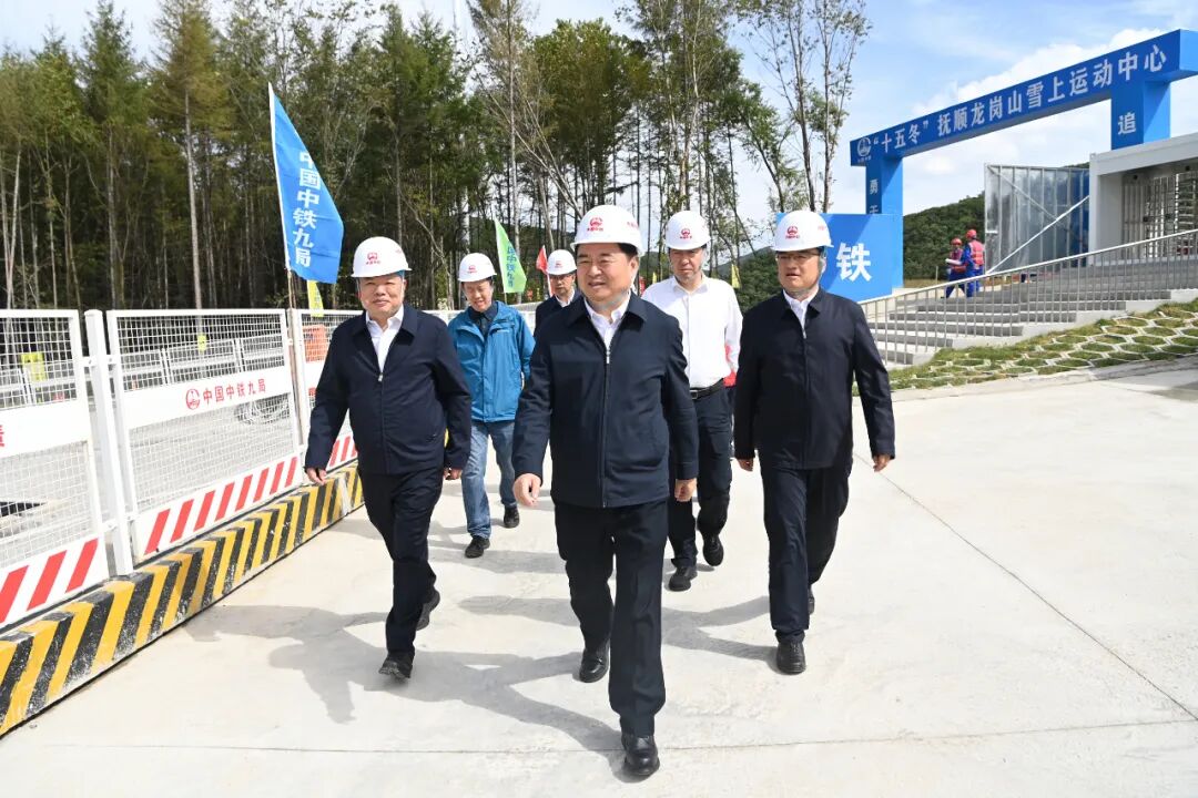 省委书记、省人大常委会主任郝鹏来到抚顺龙岗山雪上运动中心施工现场,实地察看“十五冬”场馆建设进展。