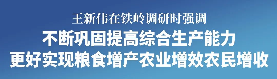 10月11日,省委副书记、省长王新伟在铁岭市调研。他强调,要深入贯彻习近平总书记关于“三农”工作的重要论述、在辽宁考察时的重要讲话和重要指示精神,落实省委要求,扛牢维护粮食安全首要担当,以发展现代化大农业为主攻方向,统筹发展科技农业、绿色农业、质量农业、品牌农业,不断巩固提高综合生产能力,更好实现粮食增产、农业增效、农民增收,加快建设农业强省。
