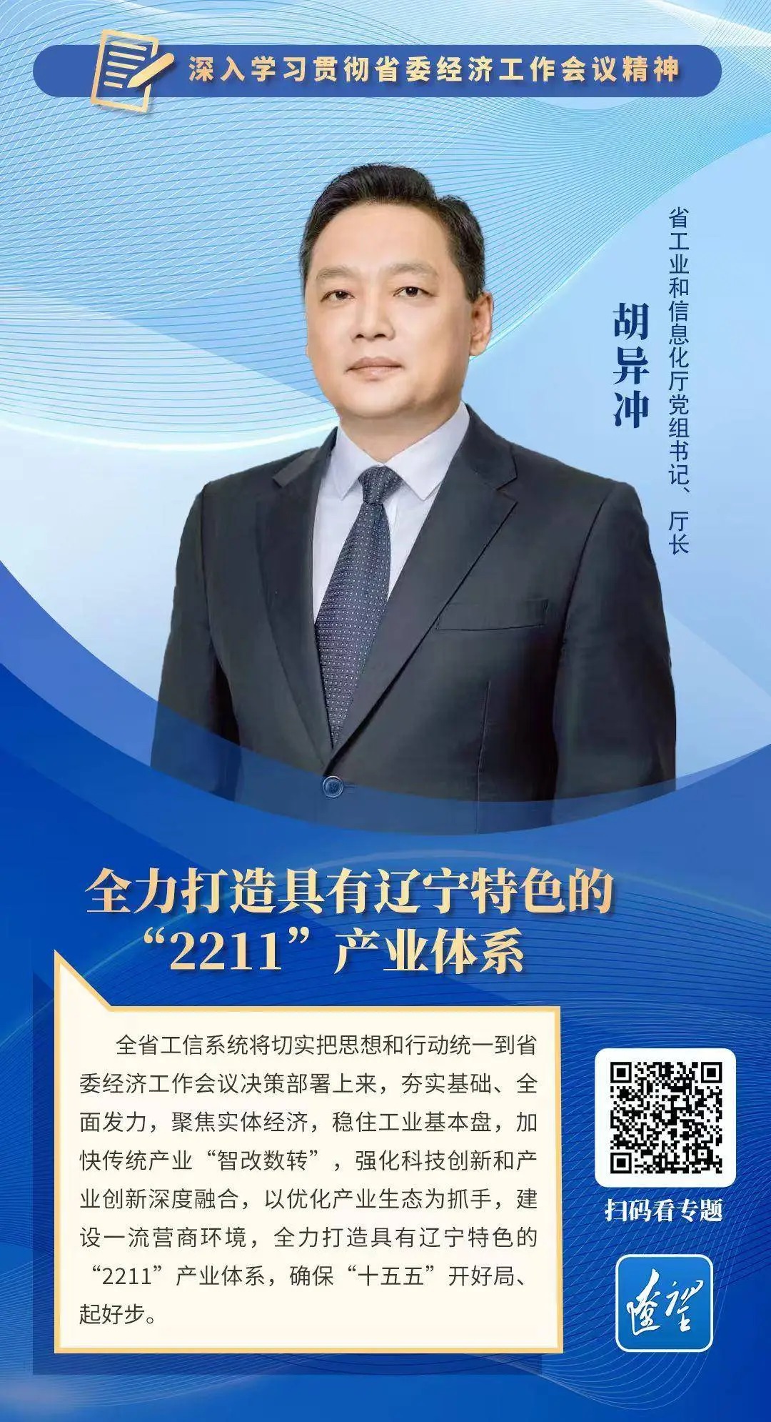 省委经济工作会议强调,要聚焦实体经济,全力打造具有辽宁特色的“2211”产业体系。胡异冲介绍,全省工信系统将着力推动4个万亿级产业基地提质升级,实施先进制造业集群培育专项行动。围绕22个优势产业集群、100条以上产业链、1000家以上核心企业,加快构建世界级、国家级、区域级集群梯次发展格局。分层建立“龙头、骨干、重点”企业培育体系,绘制强链补链延链图谱,组织开展撮合对接活动,推动龙头企业整合产业链资源。