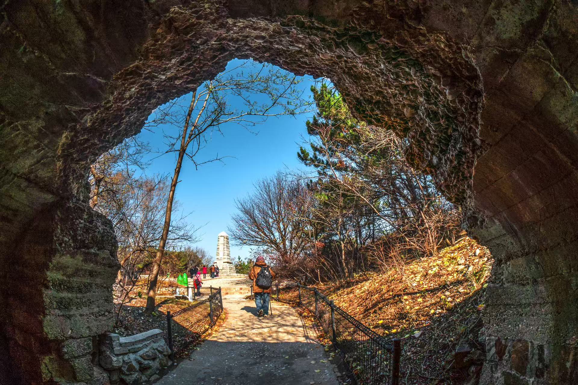 东鸡冠山景区地处旅顺市区东北部,海拔113米,是国家AAAA级景区。这里曾是日俄战争的主战场,景区内完整保留着百年战争历史的遗迹,东鸡冠山北堡垒、二龙山堡垒和望台炮台,有“露天历史博物馆”之称。美女头像“玛格丽”是当年战火在堡垒上雕刻出来的,忧郁的眼神、长长的睫毛、漂亮的卷发和眼角忧伤的泪滴清晰可见。