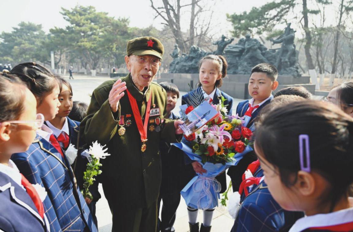清明节临近,全省各地开展“清明祭英烈”活动。日前,沈阳市各界人士走进沈阳抗美援朝烈士陵园,祭扫献花,缅怀英雄。现场,92岁志愿军老战士金东辉为孩子们讲述抗美援朝的英雄事迹。
