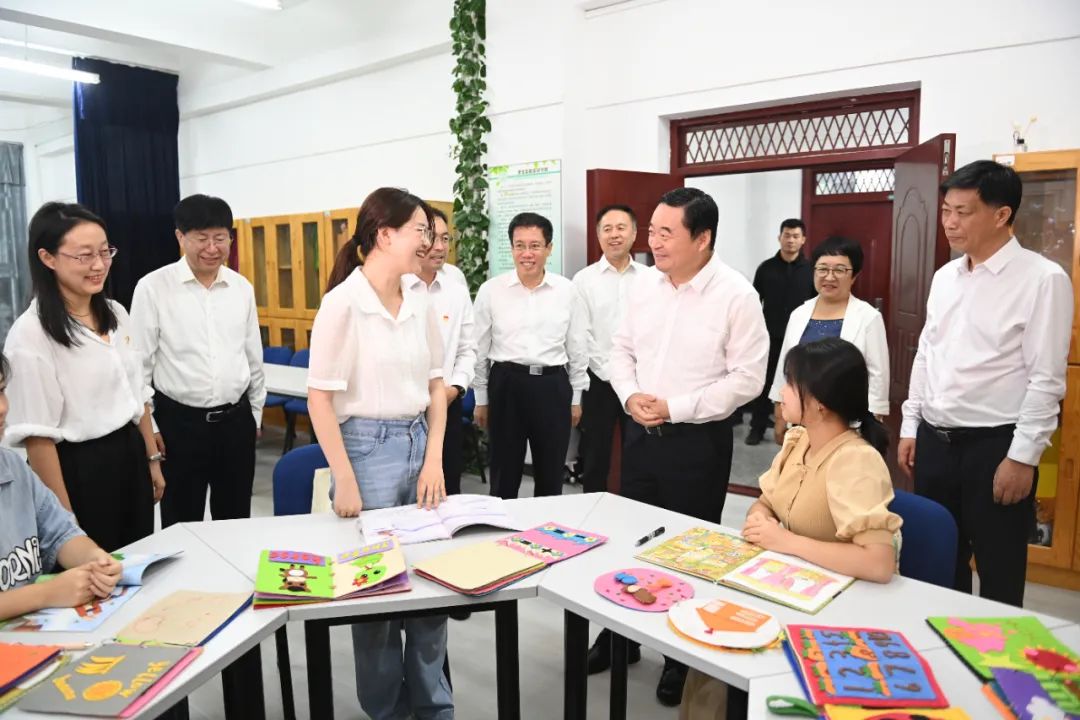 省委书记、省人大常委会主任郝鹏在沈阳师范大学学前与初等教育学院儿童文学欣赏与创作实验室,与师生亲切交流,了解师生学习和生活情况。
