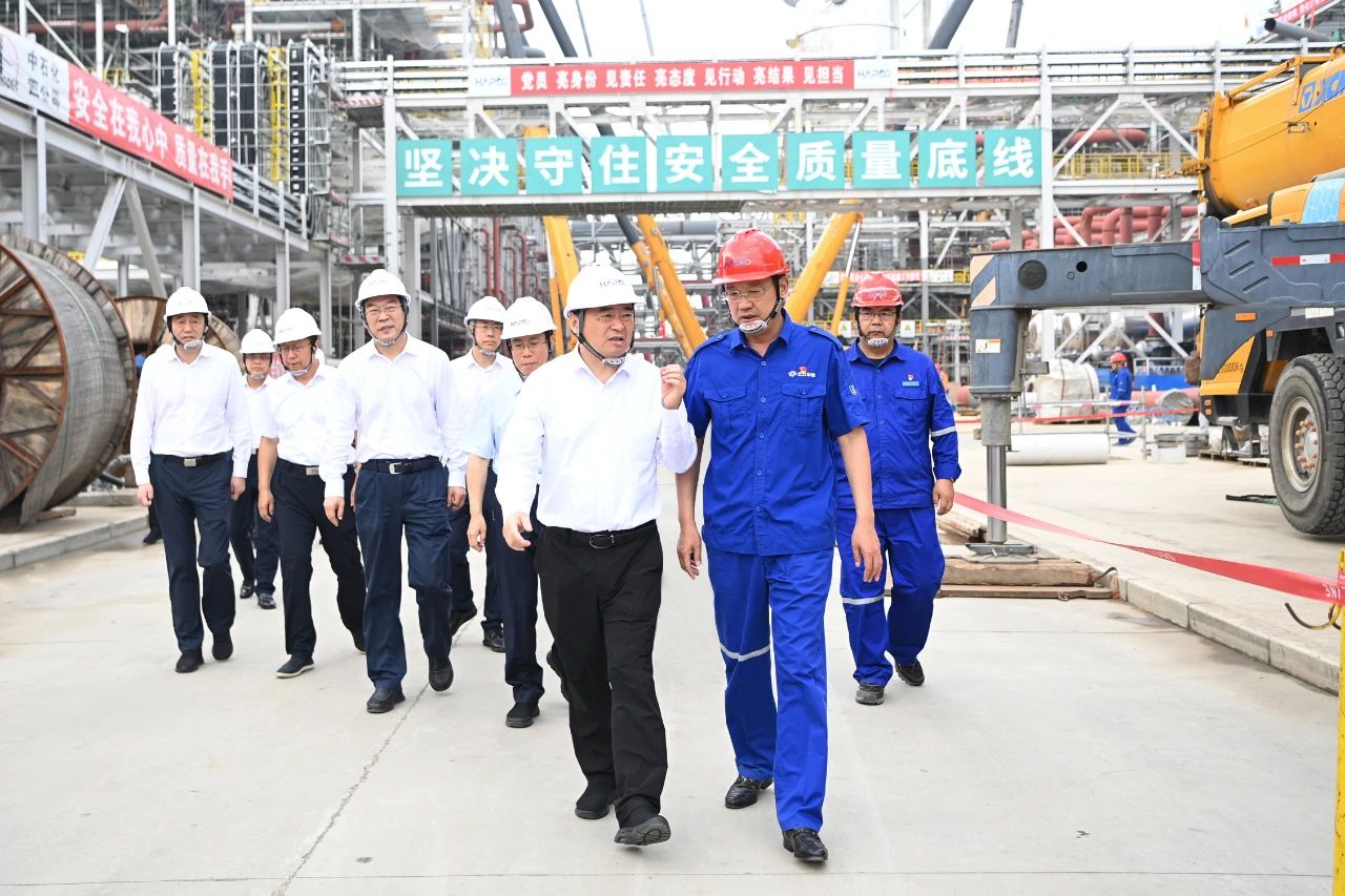省委书记、省人大常委会主任郝鹏在华锦阿美精细化工及原料工程项目施工现场听取建设进展。