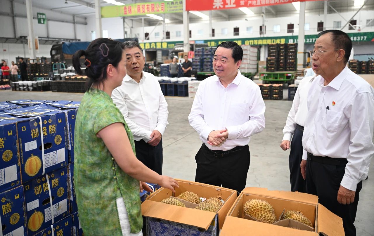 省委书记、省人大常委会主任郝鹏在东北新发地农产品供应链中心了解商户经营情况。