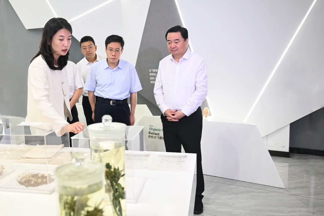省委书记、省人大常委会主任郝鹏在辽宁丰瑞天成生物技术有限公司了解企业发展历程和当地水飞蓟产业发展规划。
