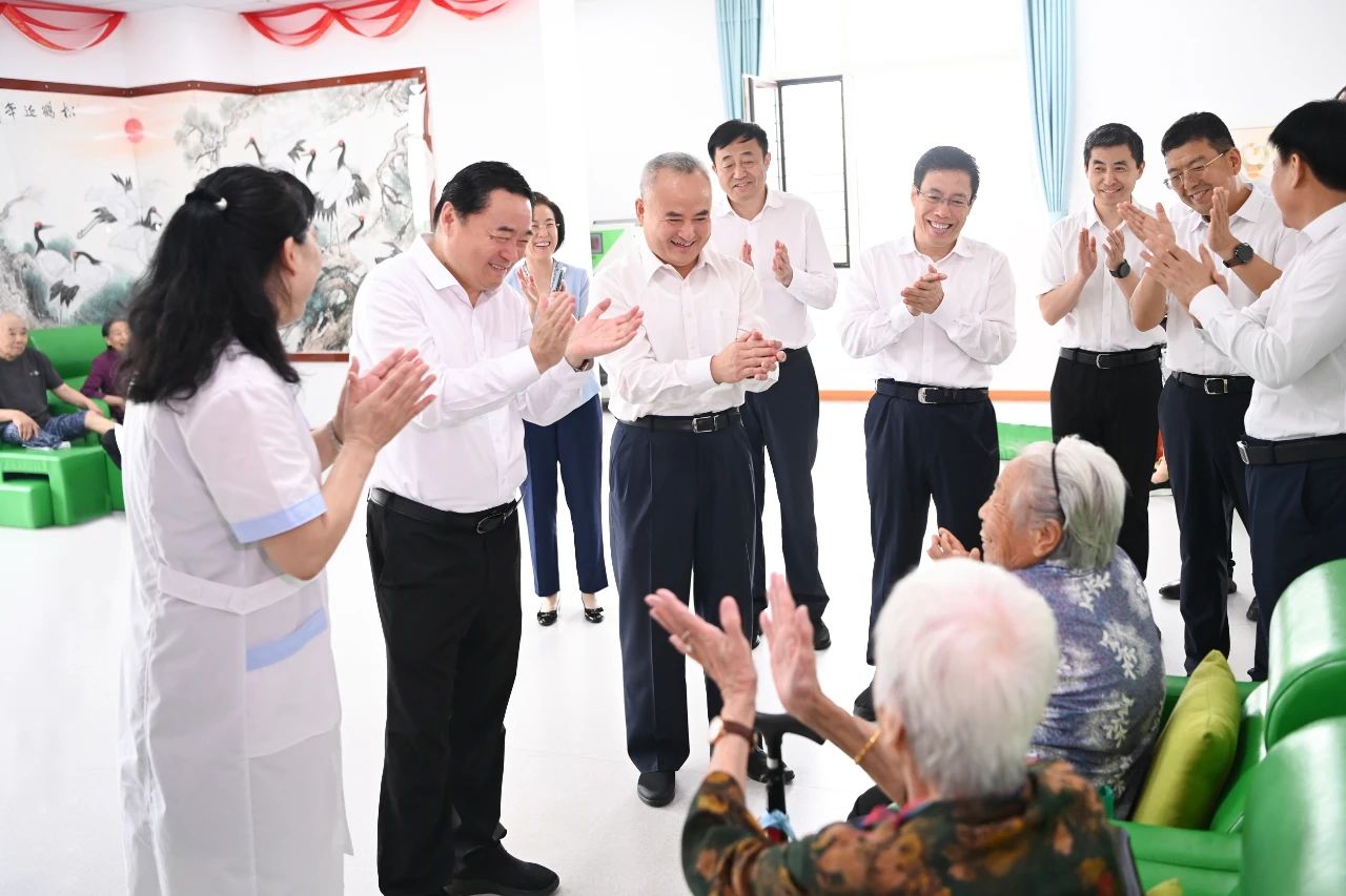 省委书记、省人大常委会主任郝鹏在辽河康养服务中心考察服务设施,并与老年人亲切交流。