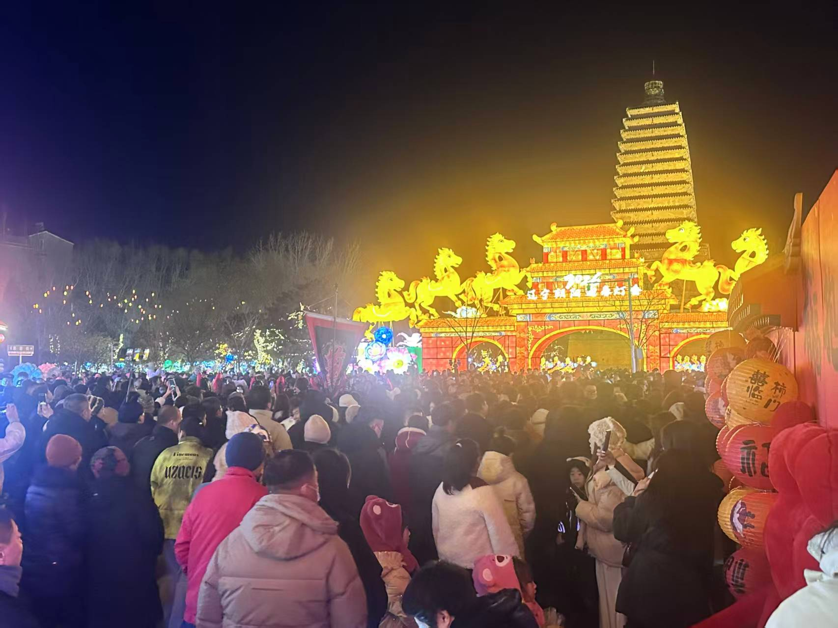 本溪工业遗产邂逅年俗。巧妙地实现了工业与非遗、历史与年俗的有机融合。“星河踏雪 八骏追光”灯组以百年高炉为背景,八匹骏马在灯海中奔腾,仿佛从历史深处踏光而来,展现了工业城市独特的文化新貌、工业文化的厚重与魅力。