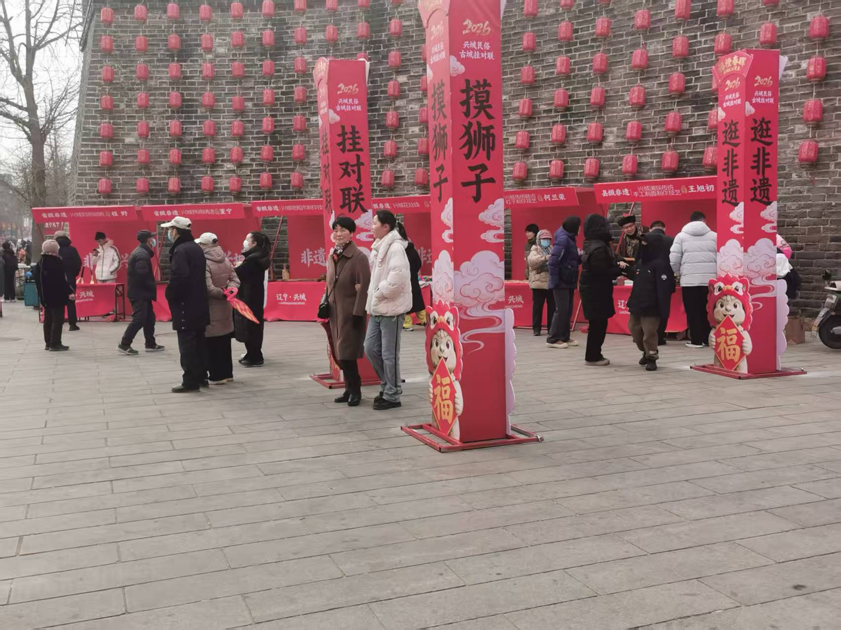 兴城古城挂春联非遗民俗活动