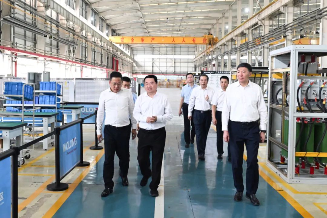 省委书记、省人大常委会主任郝鹏在卧龙电气集团辽宁荣信电气传动有限公司听取企业对营商环境的意见建议。