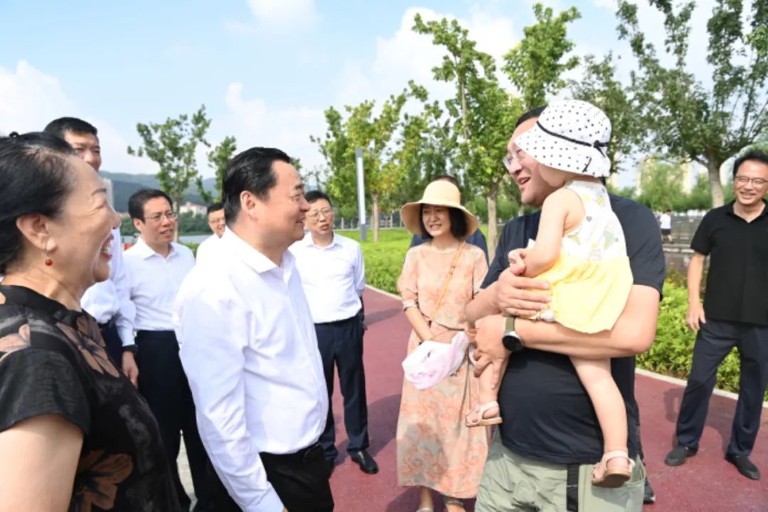 省委书记、省人大常委会主任郝鹏在千山湾与市民亲切交流。