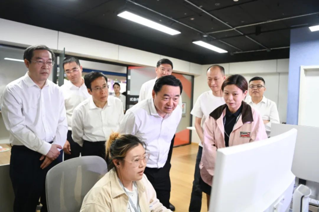 省委书记、省人大常委会主任郝鹏在闲置资产盘活改建的电商直播基地与企业负责人和主播交流。