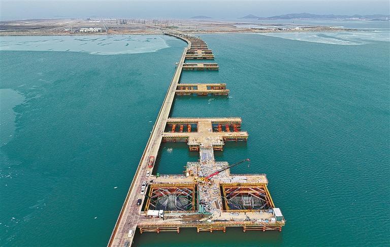 为确保施工进度质量,现场作业人员实行24小时轮班多线作业。“海域段桩基施工完成,是整个工程建设的重要一环。”李恒介绍,施工团队将全力推进海域段主桥承台、三角钢构及引桥承台、墩柱施工,同时加快陆域段桩基、承台和墩柱建设,力争早日达成各节点目标。