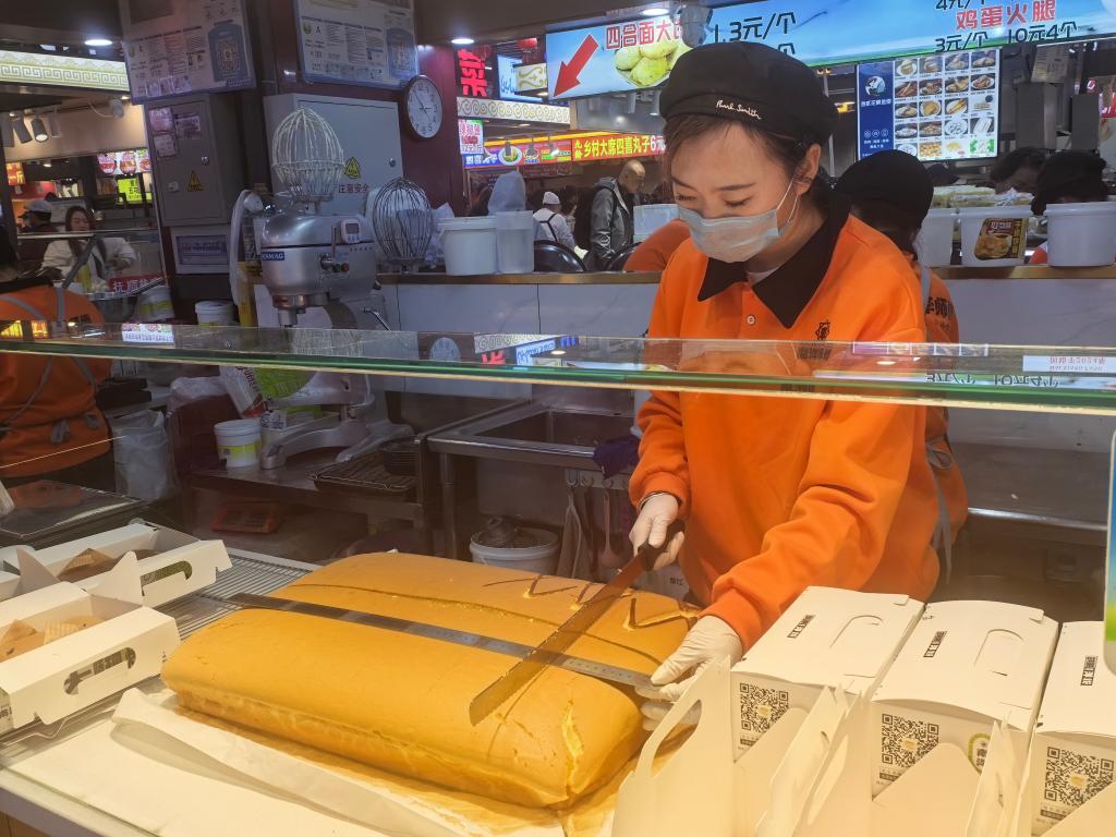 沈阳大东副食品商场,工作人员正在加工食品。新华社记者刘艺淳 摄
