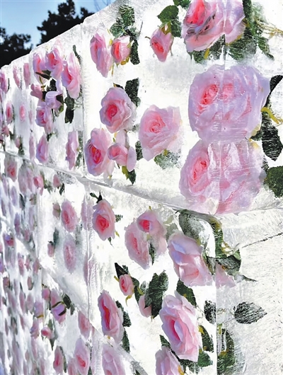 | 沈阳市南湖公园设立的冰封玫瑰墙。 沈阳市城管执法局供图 |
