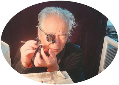 韩志耀的核雕工作室内,核雕技艺传承人在潜心创作。
