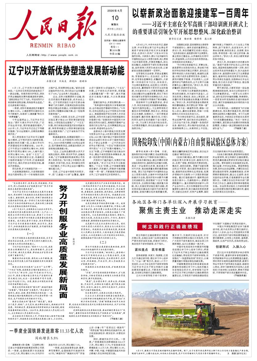 深入贯彻落实习近平总书记重要指示精神,辽宁把开放作为破局突围、重塑优势的关键一招,以高水平对外开放塑造经济发展新动能。2025年,辽宁外贸出口总额同比增长8%,实际使用外资同比增长10%,入境外国人次同比增长54%。奋进“十五五”,辽宁将充分发挥对接东北亚、沟通欧亚大陆桥的海陆门户作用,打造高能级开放平台,强化开放合作枢纽功能,建设开放强省。