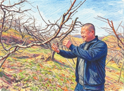| 林海亮在修剪桃树。 |