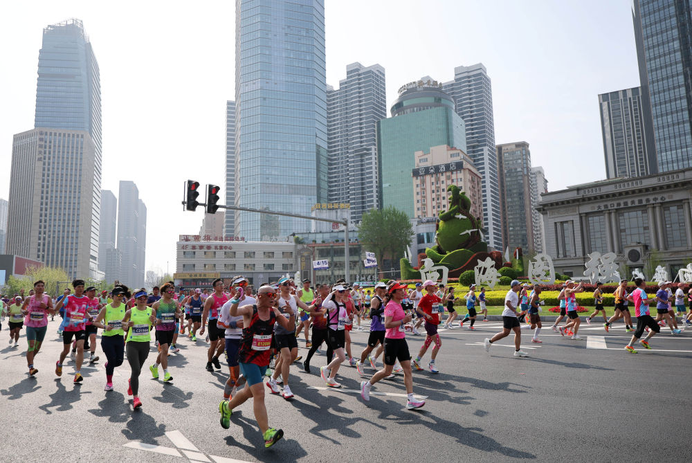 4月26日,大连马拉松参赛选手在比赛中。新华社记者 韩赫 摄