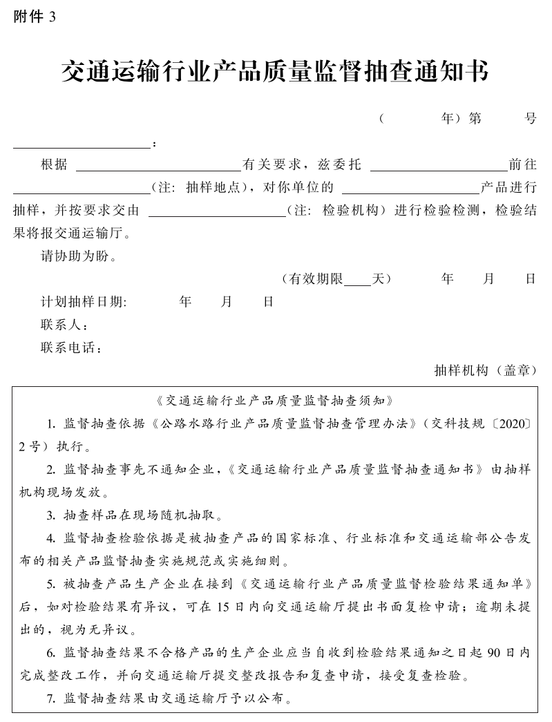 3.交通运输行业产品质量监督抽查通知书