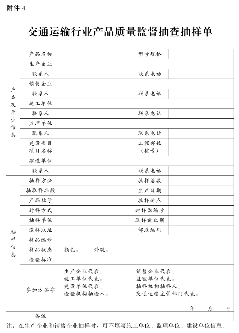 4.交通运输行业产品质量监督抽查抽样单