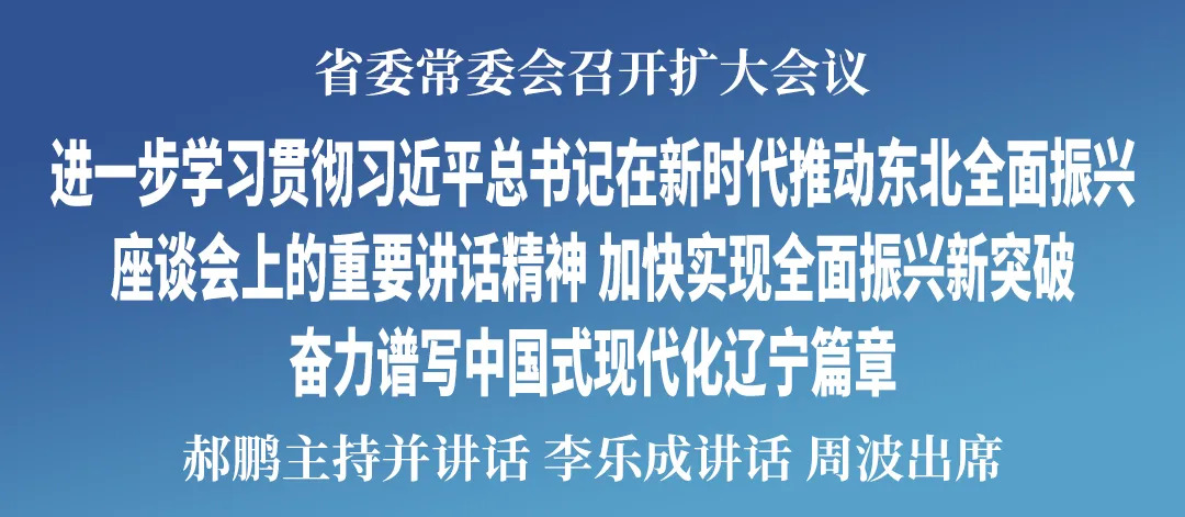 在习近平总书记在新时代推动东北全面振兴座谈会上的重要讲话发表一周年之际,9月6日,省委常委会召开扩大会议,对习近平总书记重要讲话精神进行再学习、再领悟、再深化,对贯彻落实工作进行再动员、再部署、再推进,加快实现全面振兴新突破,奋力谱写中国式现代化辽宁篇章,一步一个脚印地把总书记为辽宁擘画的宏伟蓝图变成美好现实。省委书记郝鹏主持会议并讲话,省委副书记、省长李乐成出席会议并讲话,省政协主席周波出席会议。