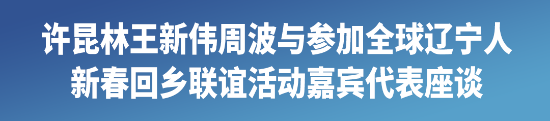 2月12日,省委书记、省人大常委会主任许昆林,省委副书记、省长王新伟,省政协主席周波在沈阳与参加“根在辽宁”全球辽宁人新春回乡联谊活动的嘉宾代表进行座谈,共话乡情、共谋振兴。